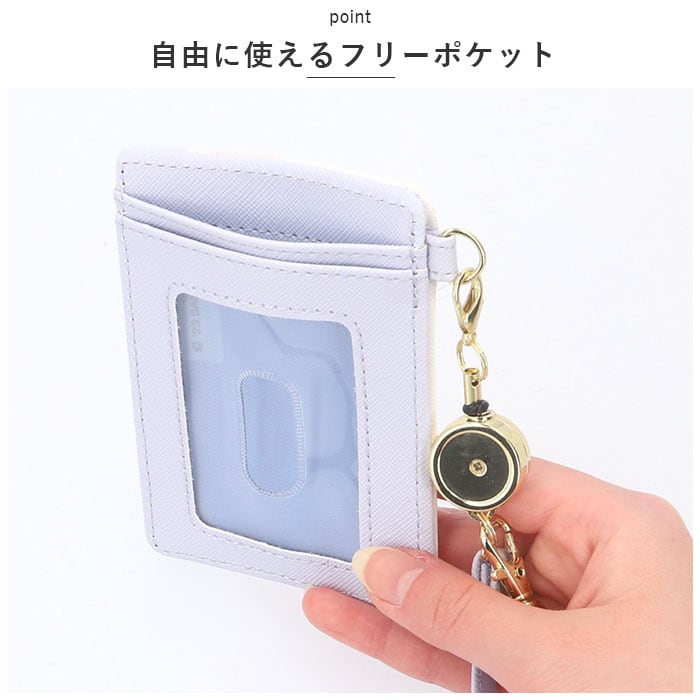 ・前面のクリアポケットは、交通系ICカードやIDカードの収納に最適。カバンのハンドルやランドセルのフックに取り付けておくと、荷物の中で迷子にならず取り出しがスムーズ。