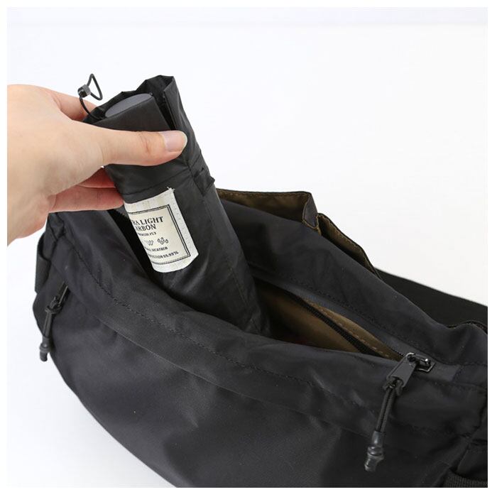・傘生地と同色のカラーに、「ULTRA LIGHT CARBON」のイラストロゴが刺繍された収納袋が付属。