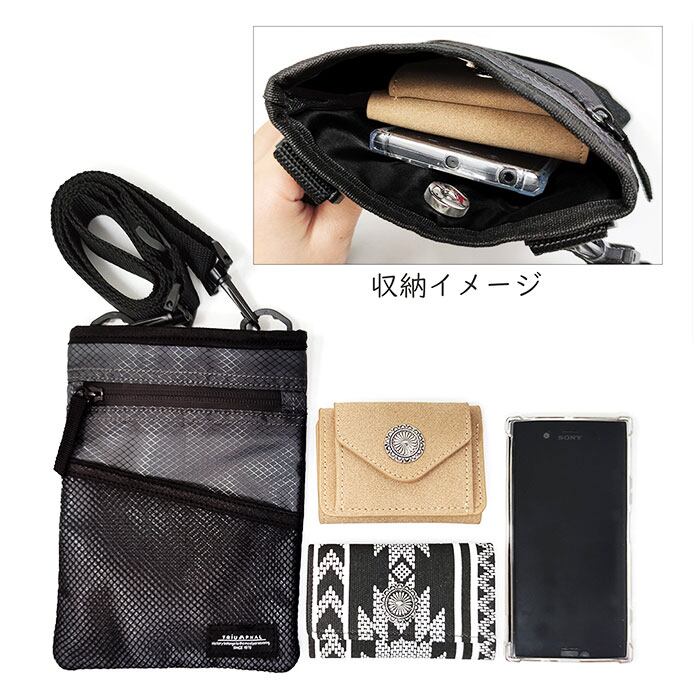 ・スマホやコインケース、キーケースなどの貴重品をすっきりひとまとめ◎ざっくり収納できるシンプルなつくり。