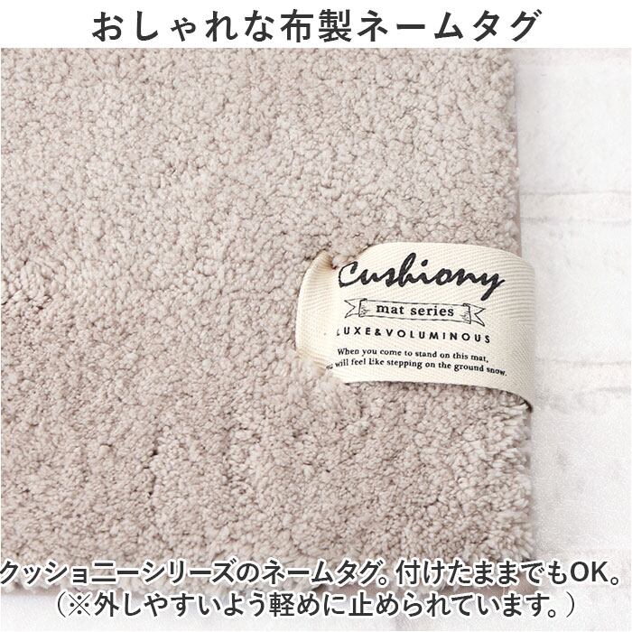 ・クッショ二ーシリーズのネームタグ。付けたままでもOK。(※外しやすいよう軽めに止められています。)