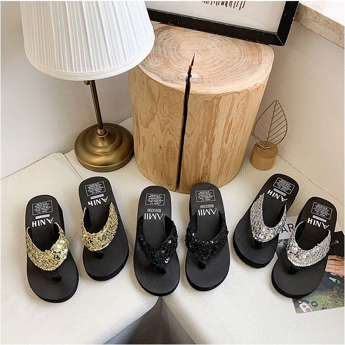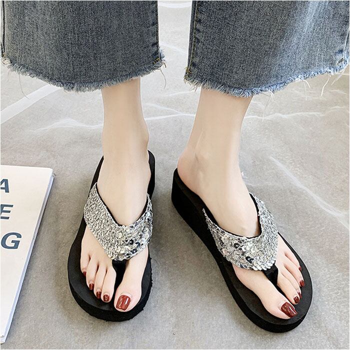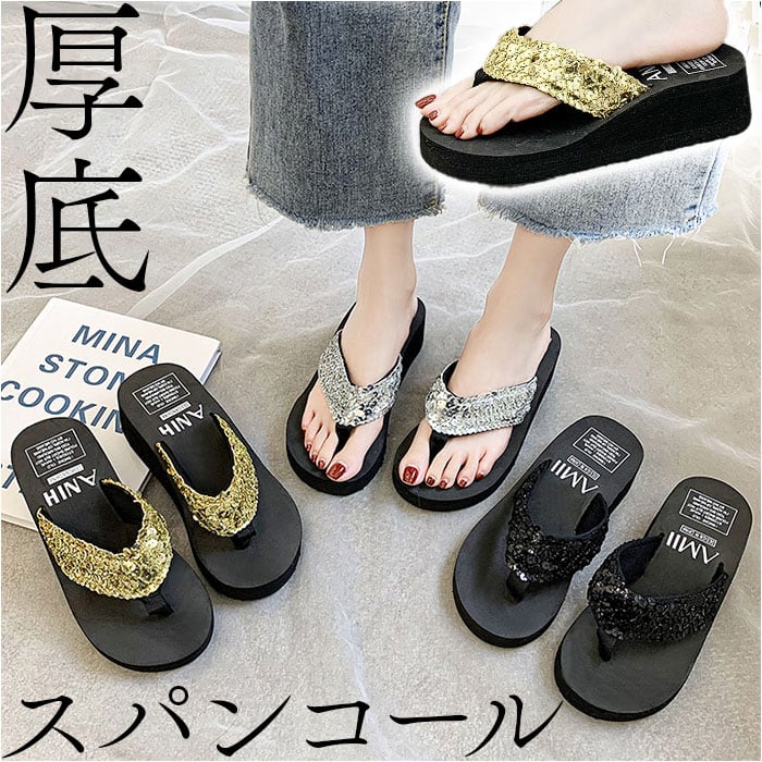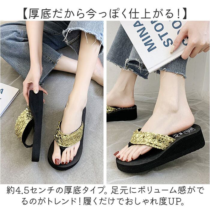 サンダル レディース 厚底 通販 厚底サンダル ビーチサンダル ビーサン ヒール 疲れにくい 柔らかい やわらかい スパンコール きらきら キラキラ フェミニン 大人 デザイン 夏 夏用 華やか かわいい 可愛い おしゃれ オシャレ