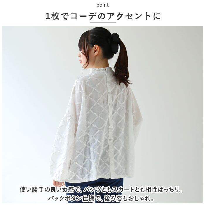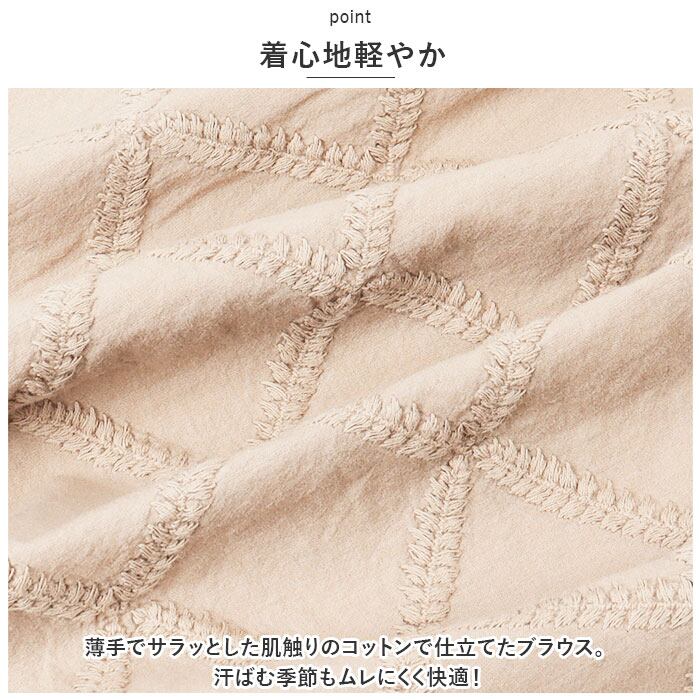 ・薄手でサラッとした肌触りのコットンで仕立てたブラウス。汗ばむ季節もムレにくく快適!