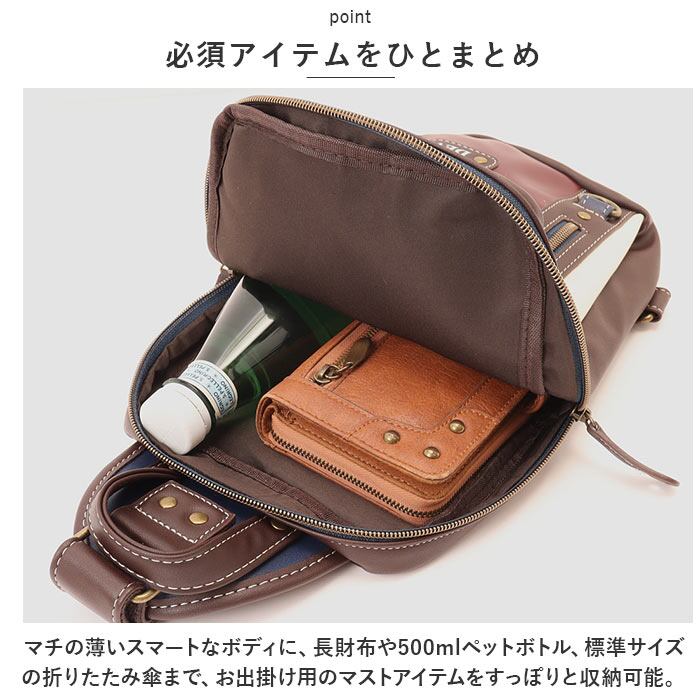 ・マチの薄いスマートなボディに、長財布や500mlペットボトル、標準サイズの折りたたみ傘まで、お出掛け用のマストアイテムをすっぽりと収納可能。