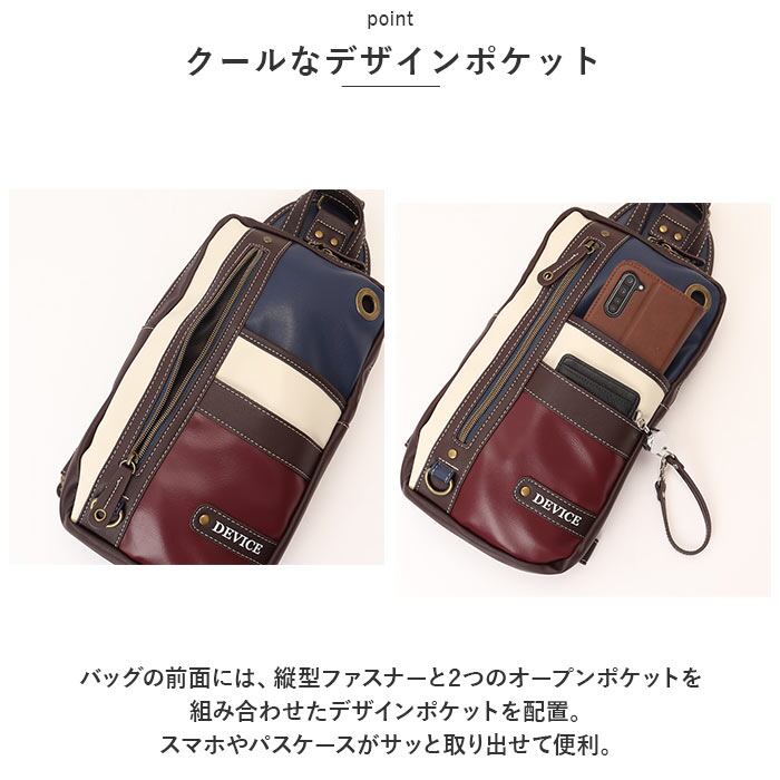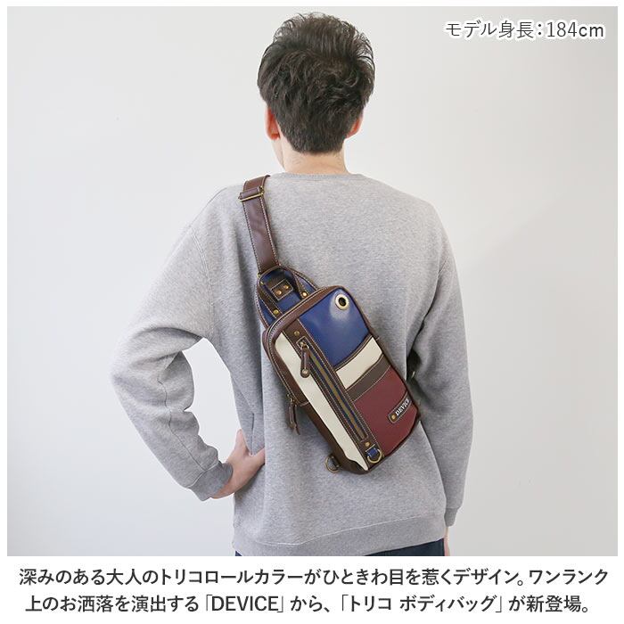 ・深みのある大人のトリコロールカラーがひときわ目を惹くデザイン。ワンランク上のお洒落を演出する「DEVICE」から、「トリコ ボディバッグ」が新登場。