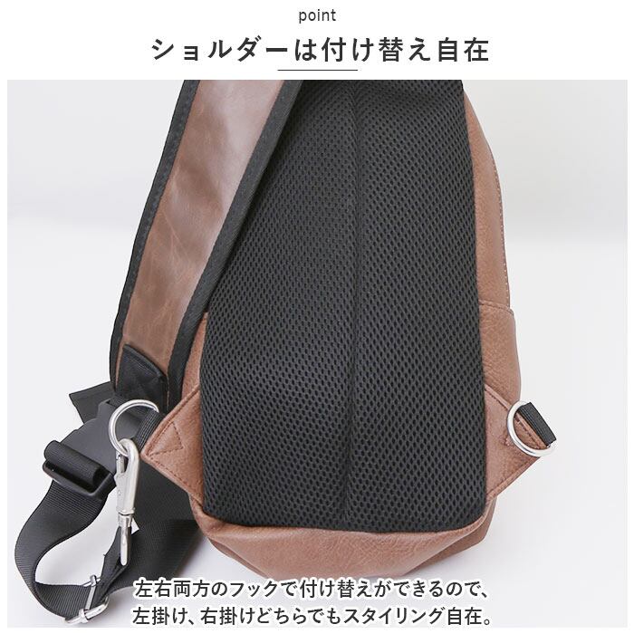 ・左右両方のフックで付け替えができるので、左掛け、右掛けどちらでもスタイリング自在。