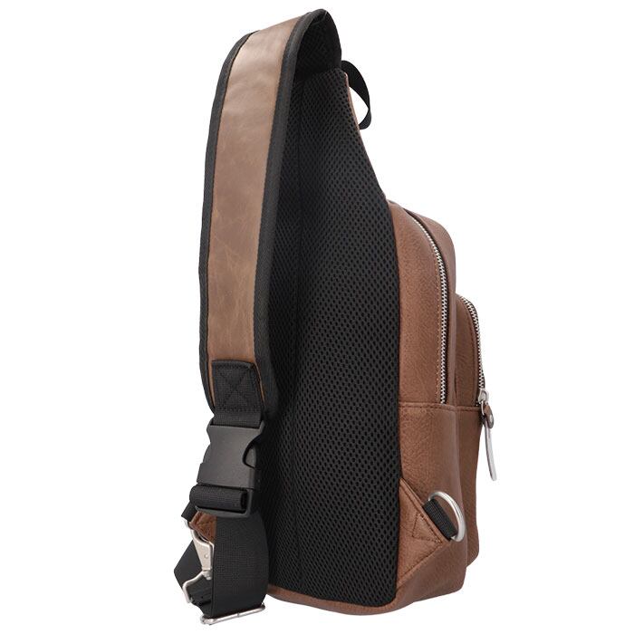・バッグの背面はクッション性と通気性に優れたメッシュ素材仕上げ。身体にぴったりと装着してもムレずに快適。