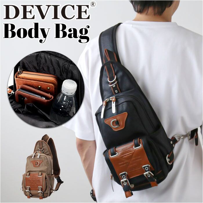 DEVICE バッグ DBH50068 通販 ボディバッグ ボディバック ボディーバッグ メンズ 小さめ ワンショルダーバッグ ショルダーバッグ ブランド デバイス WORK 大容量 かっこいい 縦長 縦型 綿 コットン 本革 通学 通勤 自転車 メンズバッグ
