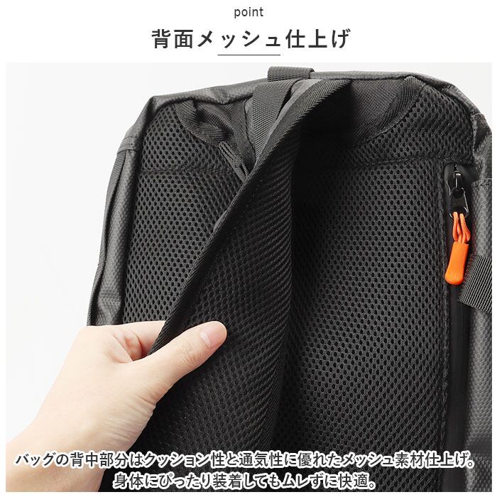 ・背面側のメインルームには、ウレタンクッション付きのPCポケットを搭載。周辺機器や筆記用具が整理しやすいオーガナイザーポケット付きなので、ビジネスシーンで大活躍。