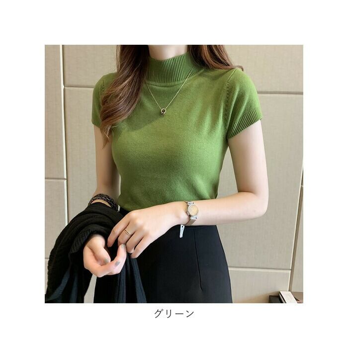 レディース サマーニット 通販 ニット 半袖ニット タートルネック tシャツ ハイネック カットソー トップス 半袖 春 夏 秋 おしゃれ 無地 きれいめ オフィス 通勤 大人 20代 30代 40代 50代