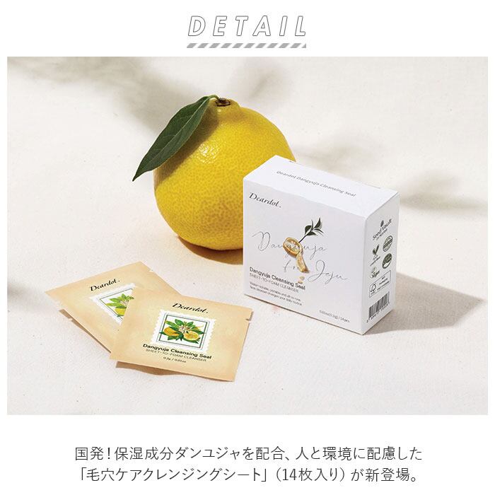 ・韓国発!保湿成分ダンユジャを配合、人と環境に配慮した「毛穴ケアクレンジングシート」(14枚入り)が新登場。