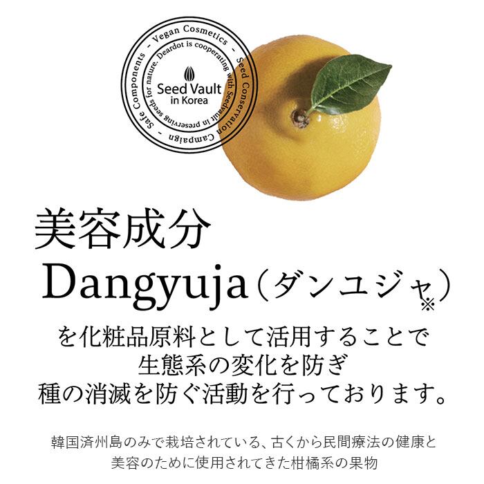 ・韓国済州島のみで栽培!古くから民間療法の健康と美容のために使用されてきた柑橘系の果物「ダンユジャ」を配合。保湿しつつ、すっきりとした洗い上がり◎