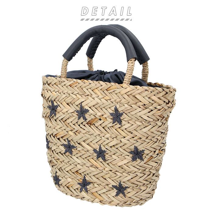 かごバッグ トート 通販 トートバッグ 小さめ 水草バッグ 夏 春夏 おでかけ カゴバッグ 巾着 星刺繍 シーグラス おしゃれ かわいい シンプル ナチュラル カジュアル DRAWER PLUS ドロワープラス