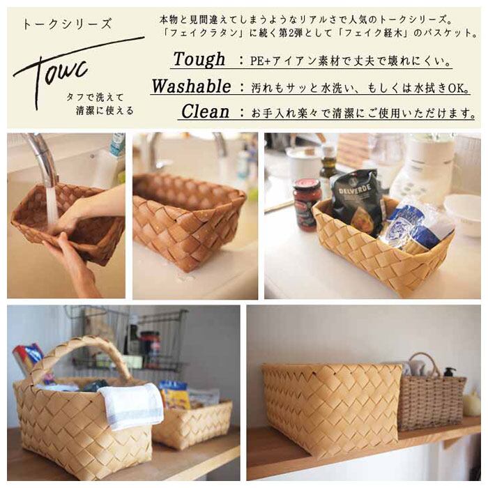 収納かご おしゃれ 通販 収納 かご バスケット 収納バスケット 収納ケース 小物 角型 S Towc トーク PE 経木 洗える 水拭きできる フェイク経木 シンプル ナチュラル かわいい 籠 長方形 収納用品 生活雑貨
