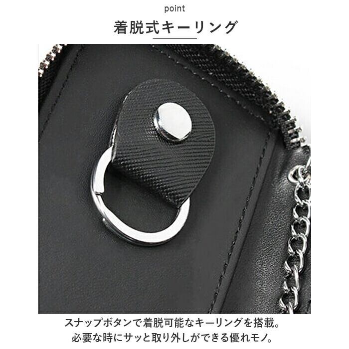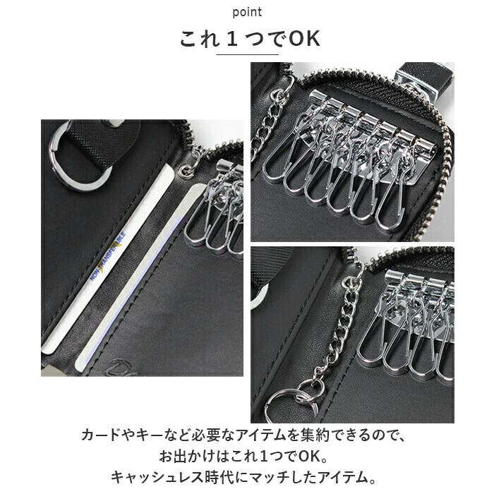 ・6連キーフックとキーチェーン、カード収納OKなど、いろいろな使い方に対応できる高い機能性が魅力。とにかく使いやすい。