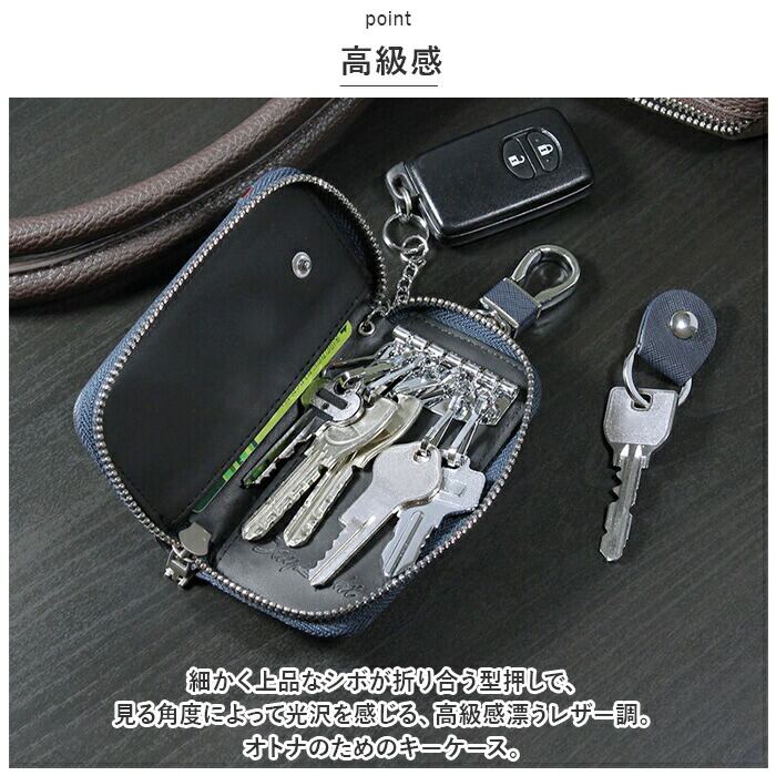 ・細かく上品なシボが折り合う型押しで、見る角度によって光沢を感じる、高級感漂うレザー調。オトナのためのキーケース。