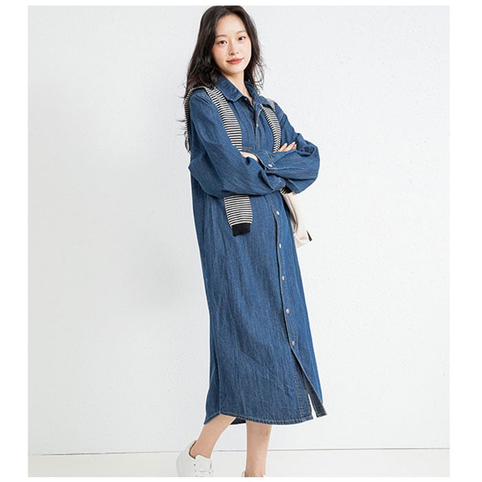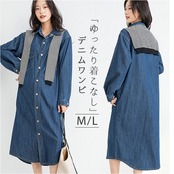 デニムワンピース ロング 長袖 アウター 体型カバー dms02