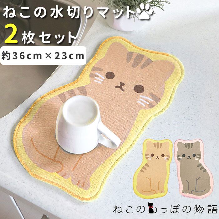 通販 水切りマット 2枚セット ねこの水切りマット かわいい シンクマット 吸水マット 小さめ ミニ マイクロファイバー キャラクター 動物 アニマル 猫 ねこ ネコ ねこのしっぽの物語 明邦 MEIHO ME157 トラ ME158 アメショ 水まわり用品