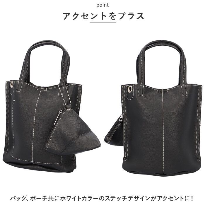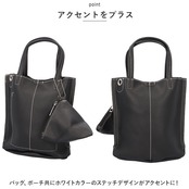 ・バッグ、ポーチ共にホワイトカラーのステッチデザインがアクセントに!