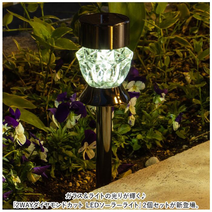 ・ガラス&ライトの光りが輝く♪「2WAYダイヤモンドカット LEDソーラーライト」2個セットが新登場。