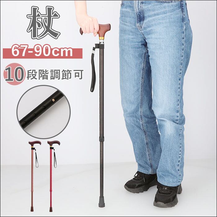 ・杖の長さは約67cm~90cmまで、2.5cm間隔の10段階調節式。適応身長は約128cm~174cm。