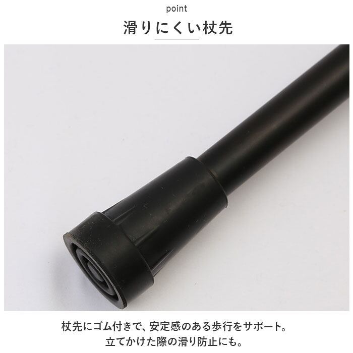・杖先にゴム付きで、安定感のある歩行をサポート。立てかけた際の滑り防止にも。
