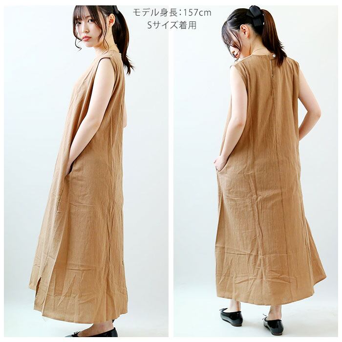 ワンピース 夏 レディース 通販 ロングワンピース マキシ丈 マキシワンピース ノースリーブ ワンピ ゆるワンピ タンクトップワンピース お出かけ リゾート 通勤 通学 シンプル 無地 サイドポケット 亜麻混 ふんわり ゆったり おしゃれ かわいい 体型カバー