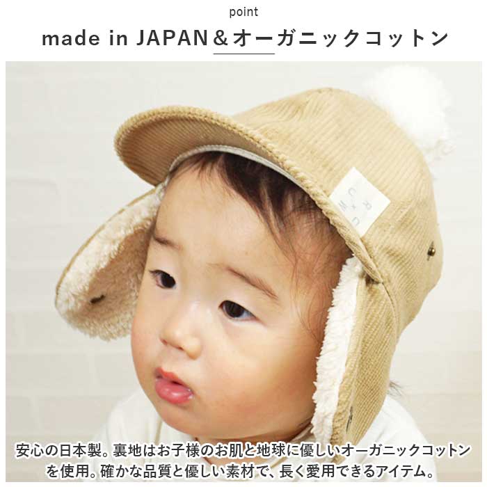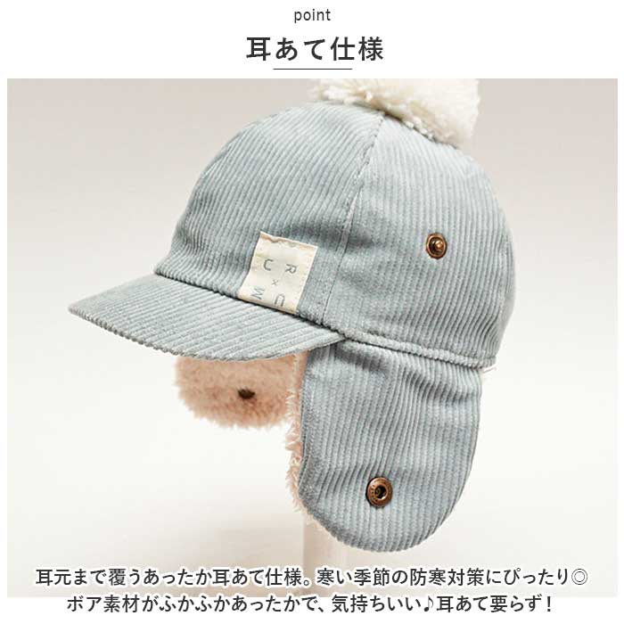・日本製&オーガニックコットン使用。もこもこ×コーデュロイでこなれ感UP♪「耳あてCAP」が登場。