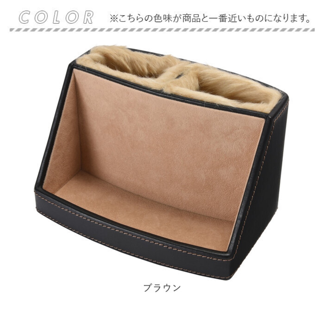 ・メガネスタンド部分は縦に眼鏡を差し込む作り!開閉の手間なくサッと出し入れができるのがポイント。