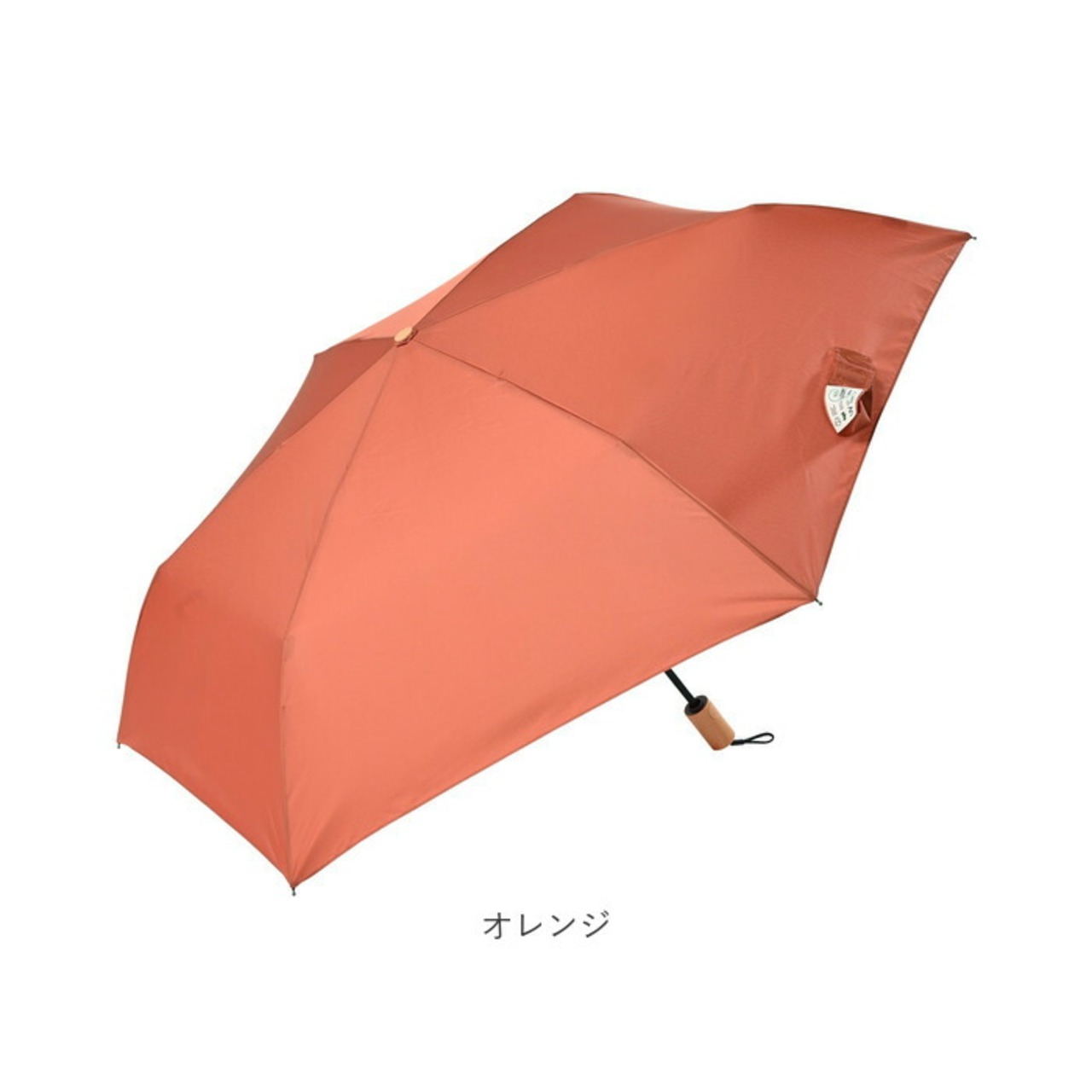 ・シンプルでありながら、木目調の持ち手やエコを示す留めバンドや傘袋のデザインがスタイリッシュ。雨の日のお出かけをもっとおしゃれに♪