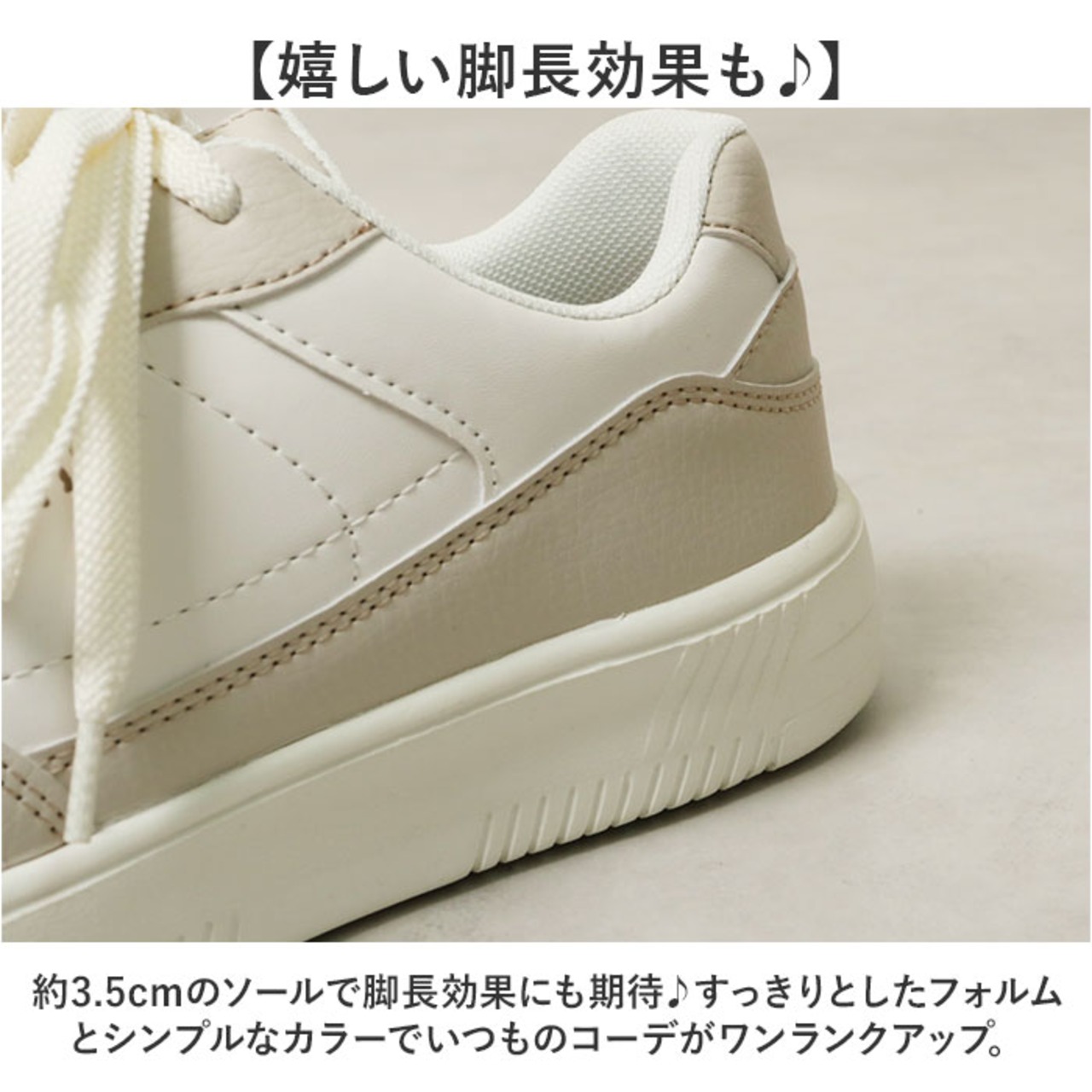 ・ちょっぴり厚底約3.5cmのソールで脚長効果にも期待♪すっきりとしたフォルムとシンプルなカラーでいつものコーデがワンランクアップ。