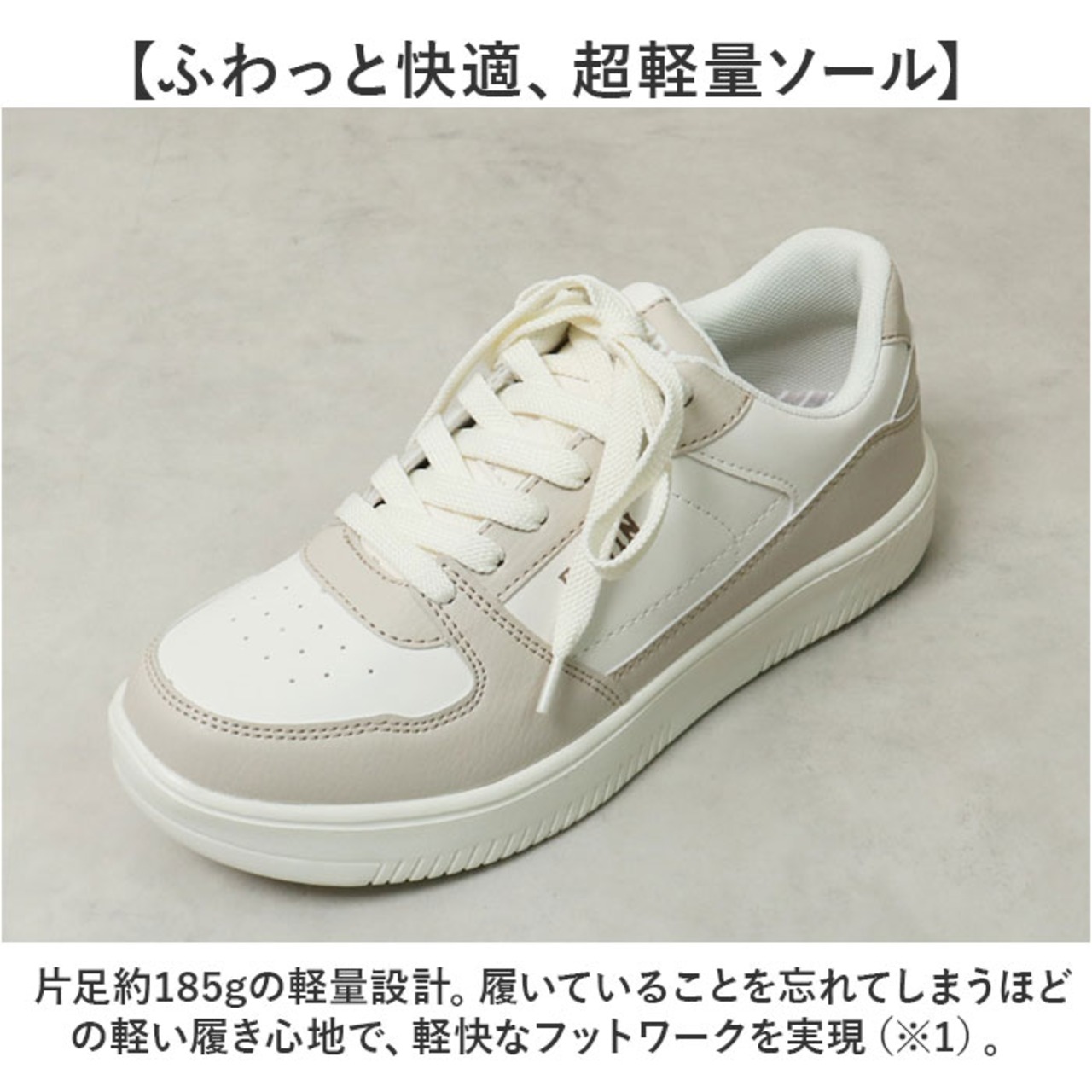 ※1.片足約185gの軽量設計。履いていることを忘れてしまうほどの軽い履き心地で、軽快なフットワークを実現・・・(※23.5cmサイズの商品、片足分の重量です。)