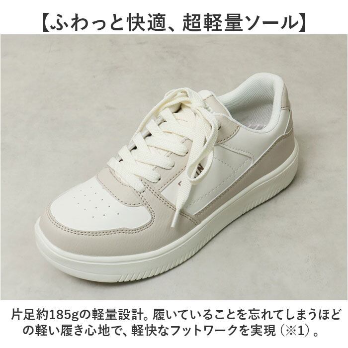 ・仕上げの異なるフェイクレザーを貼り分けた、異素材コンビ使いにセンスが光る!ONでもOFFでも毎日が全力投球のアクティブ女子にオススメの一足。