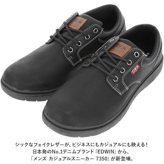 EDWIN スニーカー メンズ 7350 通販 ローカット エドウィン 靴 ローカットスニーカー カジュアルシューズ おしゃれ きれいめ 大人 仕事 ビジネス 通勤 通学 シンプル 無地 レースアップ EDW-7350 メンズシューズ メンズ靴