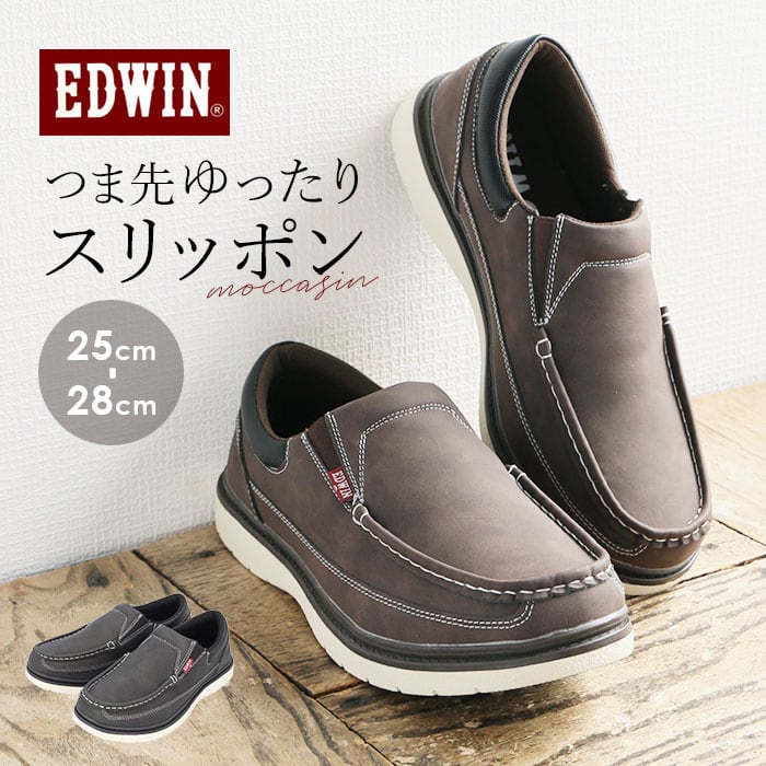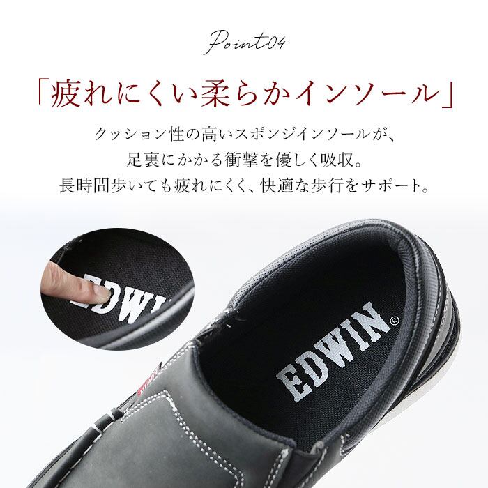 EDWIN スリッポン メンズ 7351 通販 スニーカー エドウィン 靴 シューズ カジュアルシューズ おしゃれ きれいめ 紐なし ひもなし 無地 シンプル 大人 仕事 通勤 通学 EDW-7351 メンズシューズ メンズ靴