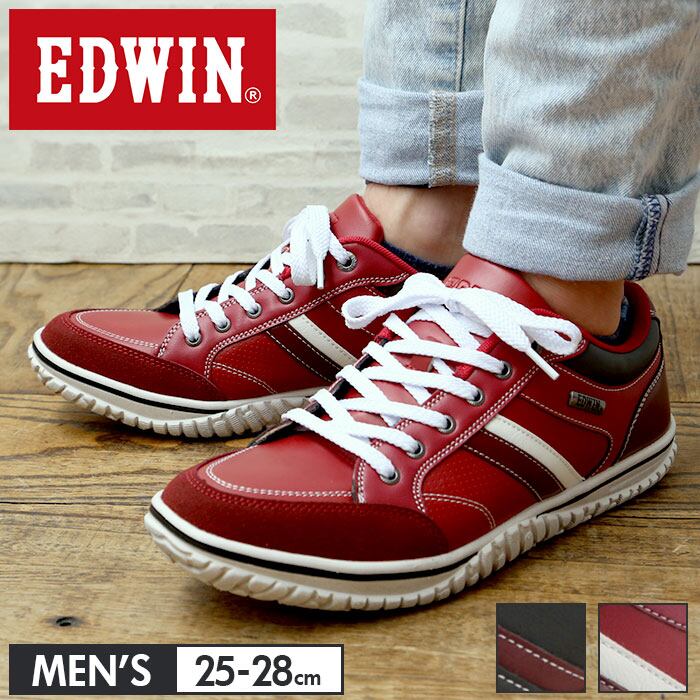 EDWIN スニーカー メンズ 通販 黒 赤 通学 おしゃれ エドウィン 靴 7537 軽量 軽い カップインソール 歩きやすい 疲れにくい シンプル カジュアル ローカット シューズ メンズファッション