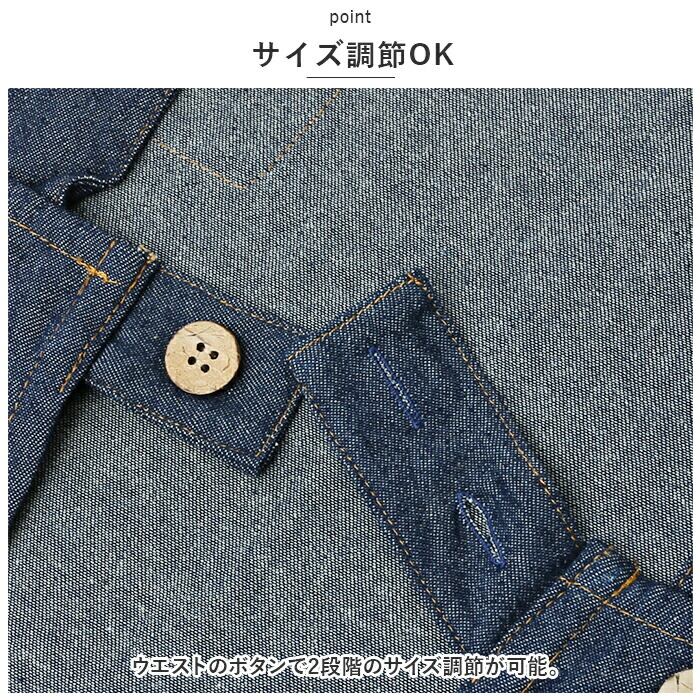 ・ウエストのボタンで2段階のサイズ調節が可能。