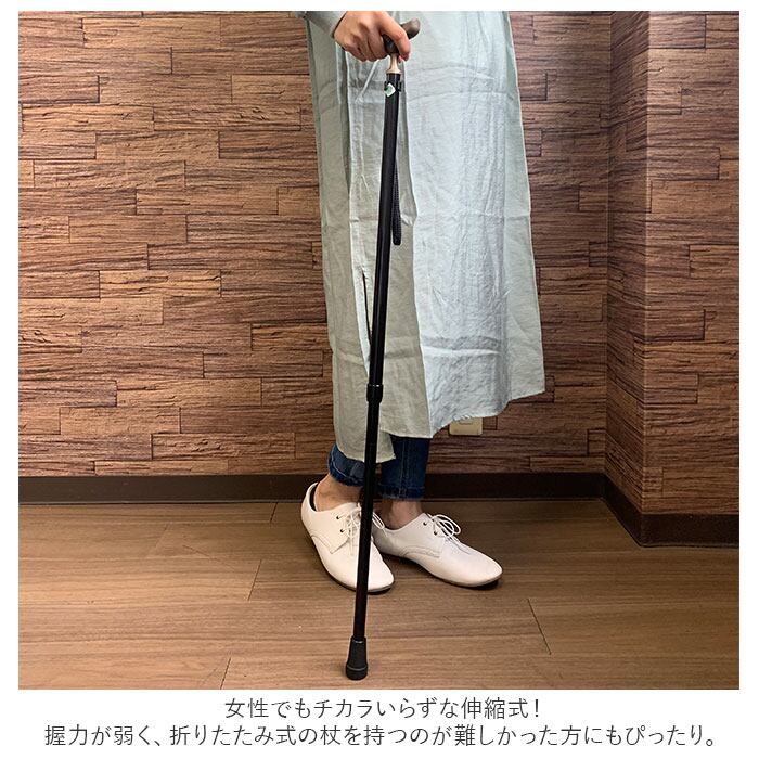 ・女性でもチカラいらずな伸縮式!握力が弱く、折りたたみ式の杖を持つのが難しかった方にもぴったり。