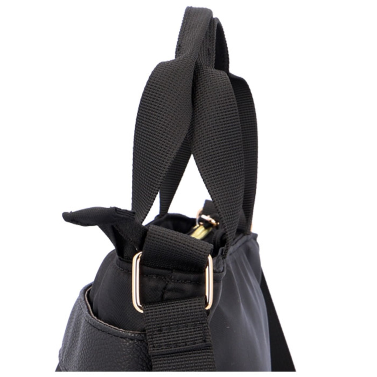 ・表面にやや光沢のあるポリエステル素材を使用。合皮素材やゴールドの金具を組み合わせ、上品さをプラス♪