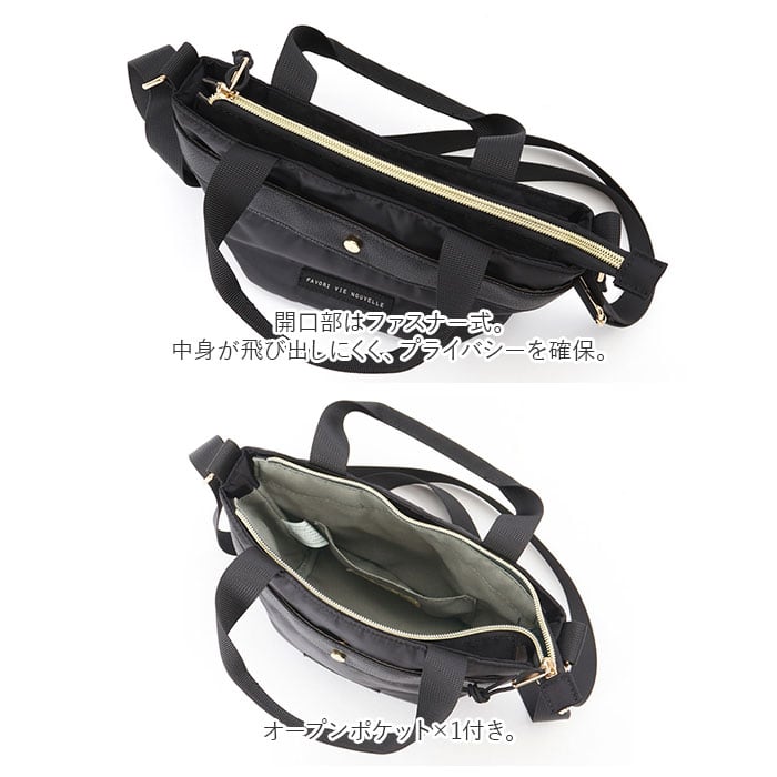 ・開口部はファスナー式。中身が飛び出しにくく、プライバシーを確保。