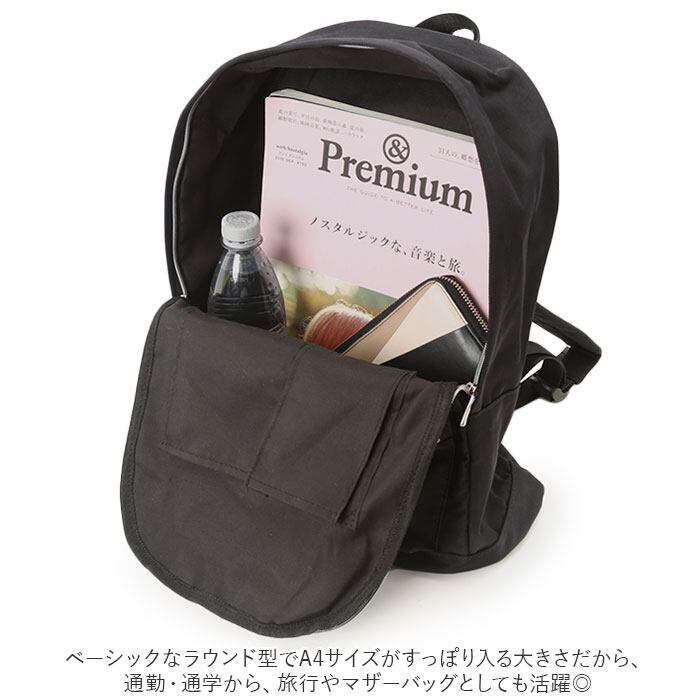 ・ベーシックなラウンド型でA4サイズがすっぽり入る大きさだから、通勤・通学から、旅行やマザーバッグとしても活躍◎