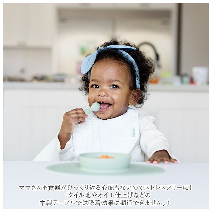 ・吸着性もあるシリコン素材を使用♪お子様がいたずらしてもテーブルに張り付いて動かず、集中して食事が出来る◎