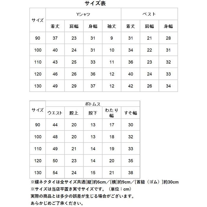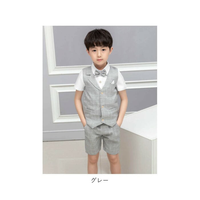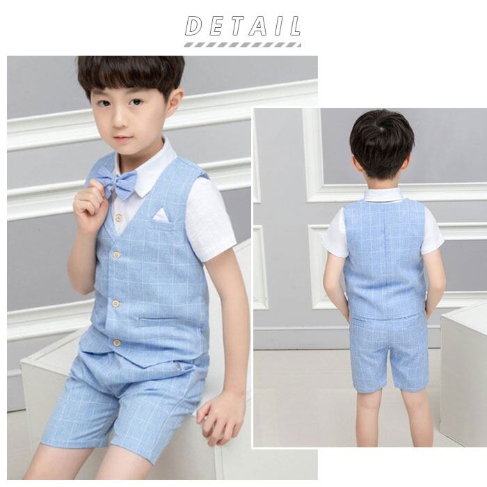 ・ベスト&半袖ワイシャツ&ハーフパンツ&蝶ネクタイの、すぐに着られる4点セット!