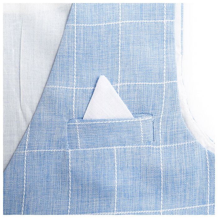 ・ベストとパンツには、汗ばむ季節でも涼しく着られる綿混紡生地を使用。軽快なウィンドウペンチェック柄は、どの世代の方からも好印象間違いなし♪