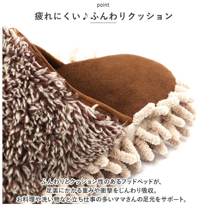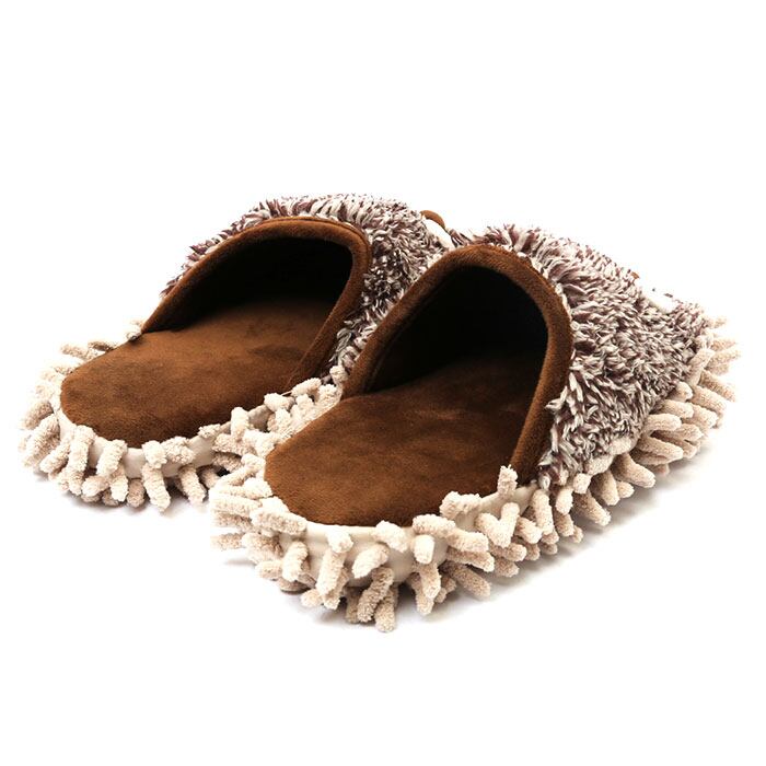 ・お掃除用モップと同じ、柔らかなマイクロファイバー繊維の“ふさ”が、小さなホコリやチリを逃さずキャッチ!履いて歩くだけで、隅々までパッとお掃除!