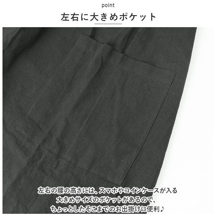 ・左右の腰の高さには、スマホやコインケースが入る大きめサイズのポケットがあるので、ちょっとしたそこまでのお出掛けに便利♪