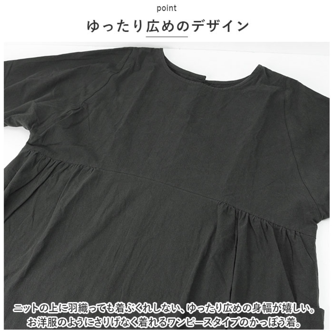 ・ニットの上に羽織っても着ぶくれしない、ゆったり広めの身幅が嬉しい。お洋服のようにさりげなく着れるワンピースタイプのかっぽう着。