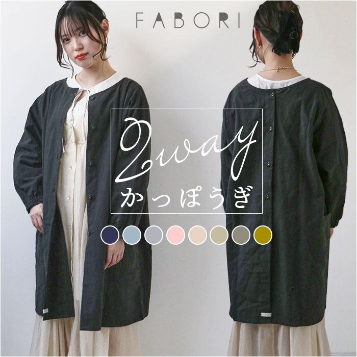 ・洋服感覚でお洒落に着こなせる♪「FABORI-ファボリ-」から、暮らしを素敵に彩る「2WAYかっぽう着(無地タイプ)」が新登場。