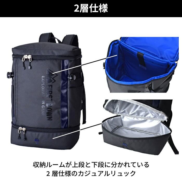 swan スワン 仕分け バックパック 通販 デイパック リュックサック リュック ダブルスペース 35L 防水 消臭 抗菌 2層 ボックス型 ブランド FIRSTDOWN 33029 FIRST DOWN ファーストダウン 男女兼用 ビジネス 通学 出張 通勤 トラベル 旅行