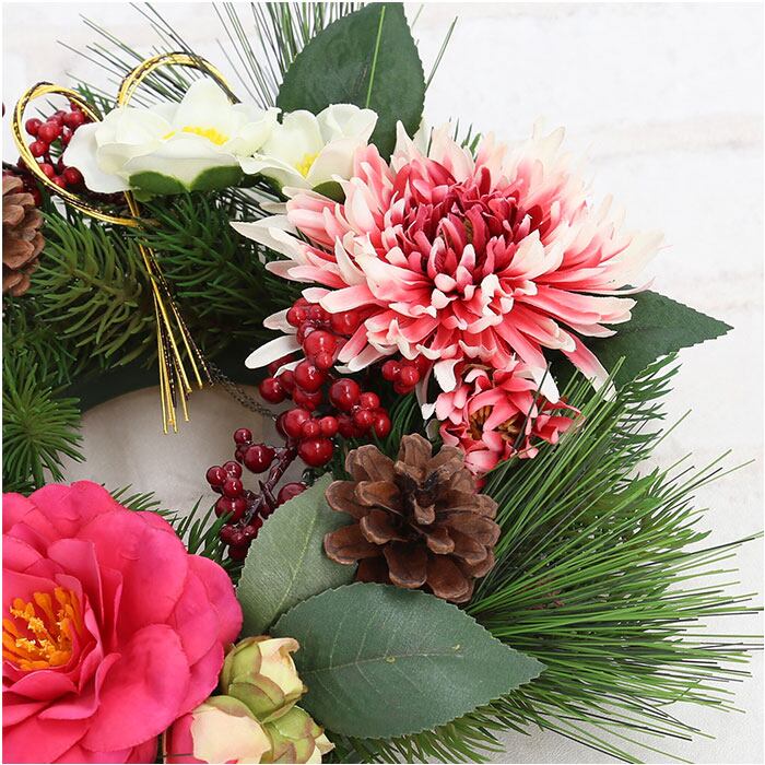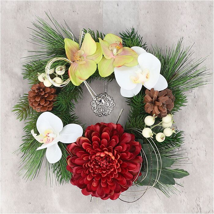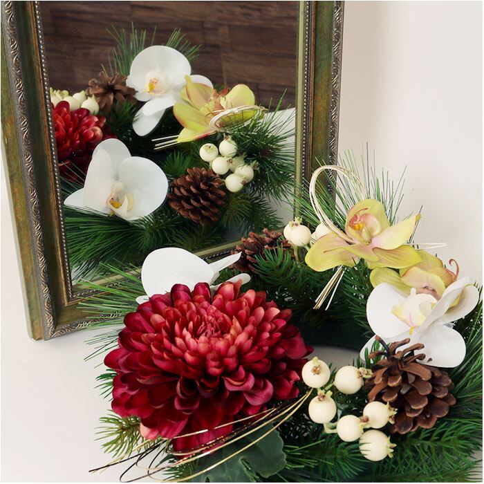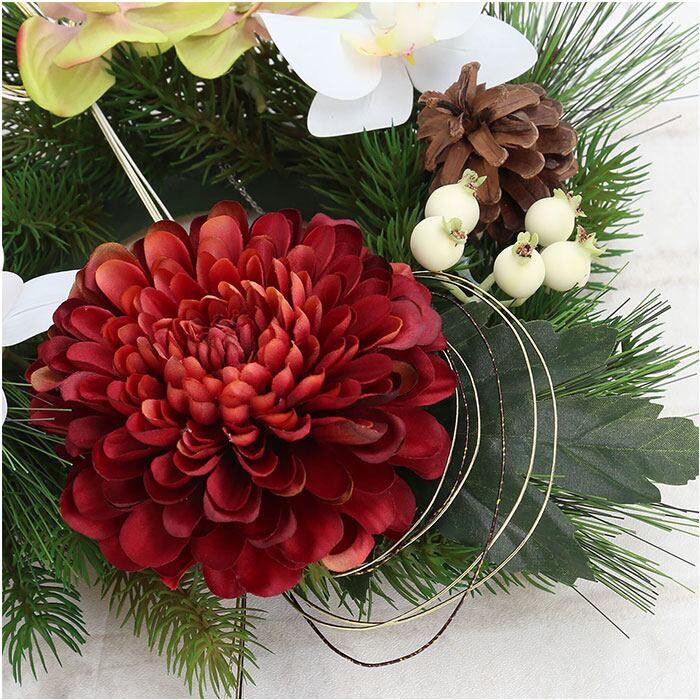 ・フェイクグリーンの中に本物の松ぼっくりを使用し、よりナチュラルな風合いに!
