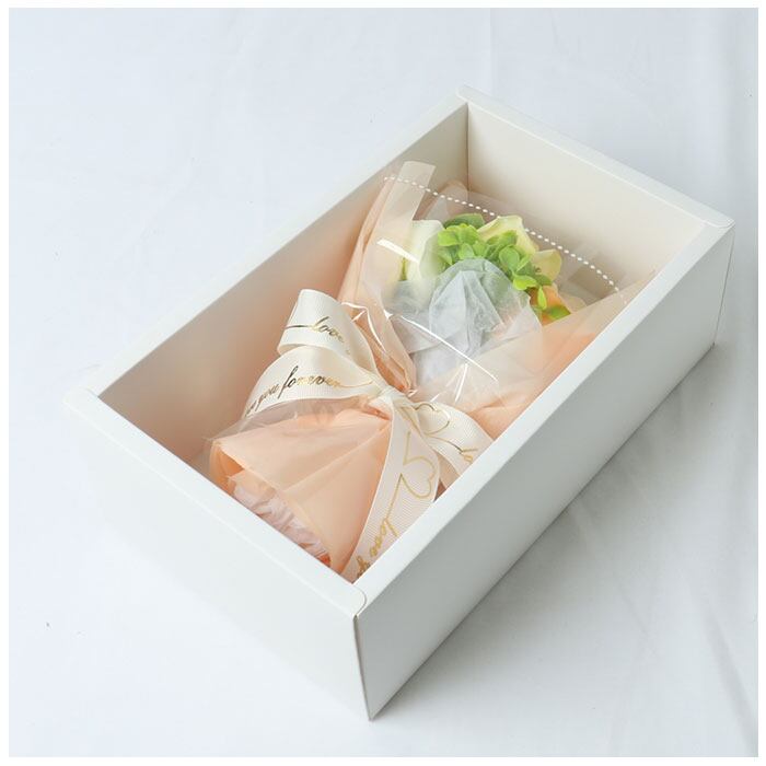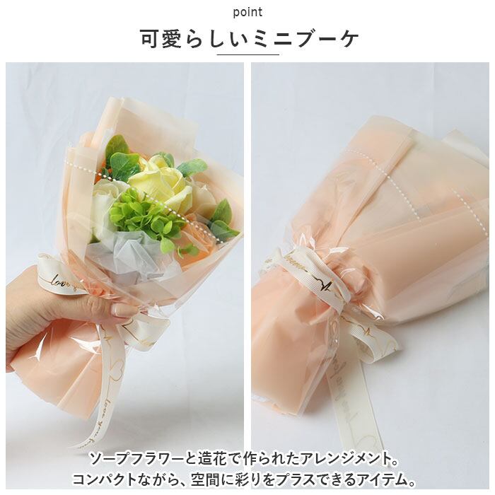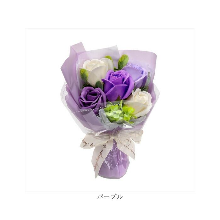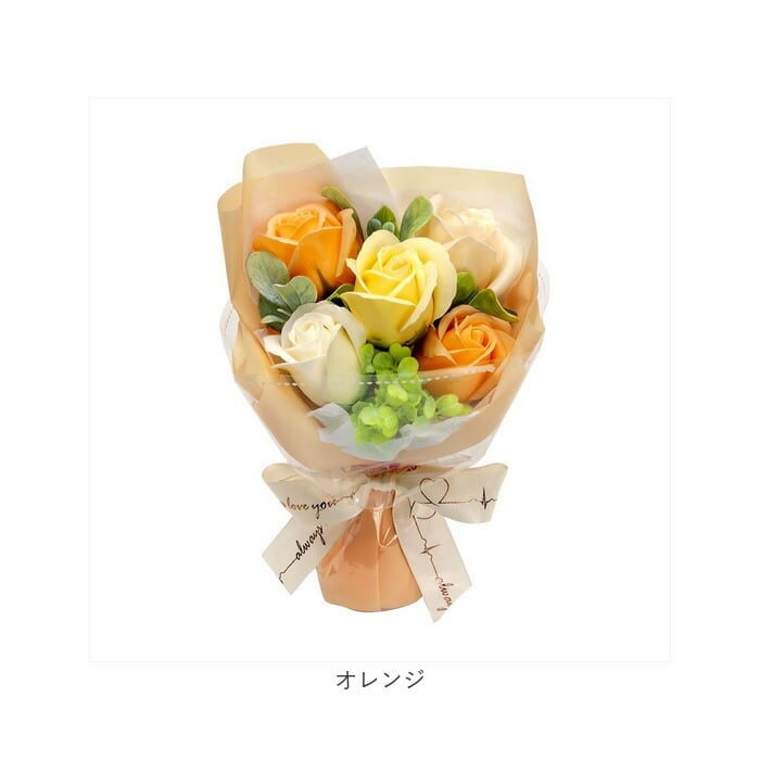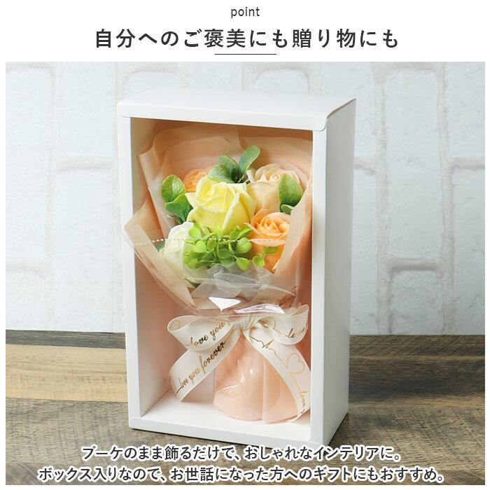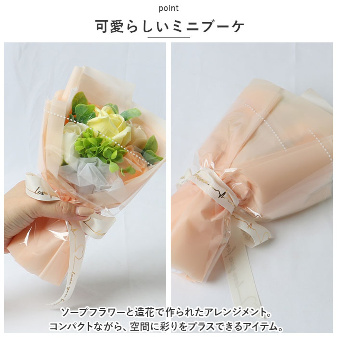 ・花びら部分に石鹸素材を含んだ素材を使用。ほんのり石鹸の香りを楽しめる観賞用のフラワー。(※石鹸・入浴剤としてはご使用できません。)